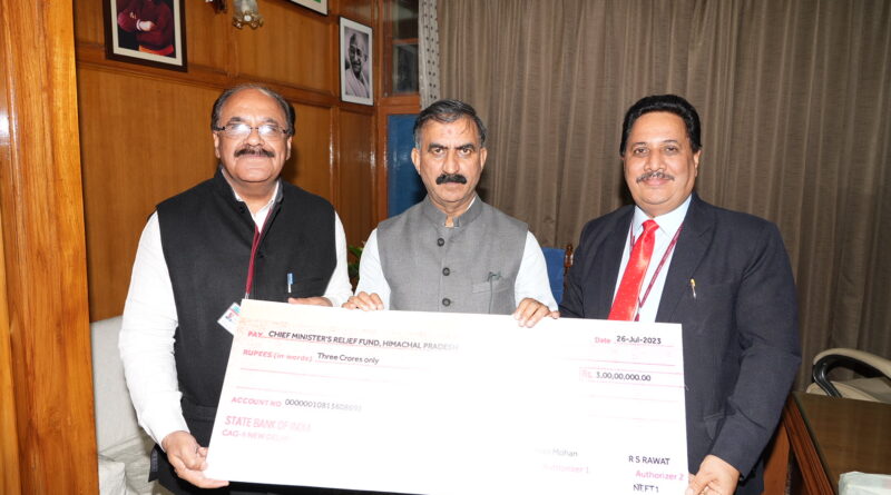 मुख्यमंत्री राहत कोष के लिए तीन करोड़ रुपये का अंशदानशिमला ब्यूरो;28 जुलाई, 2023