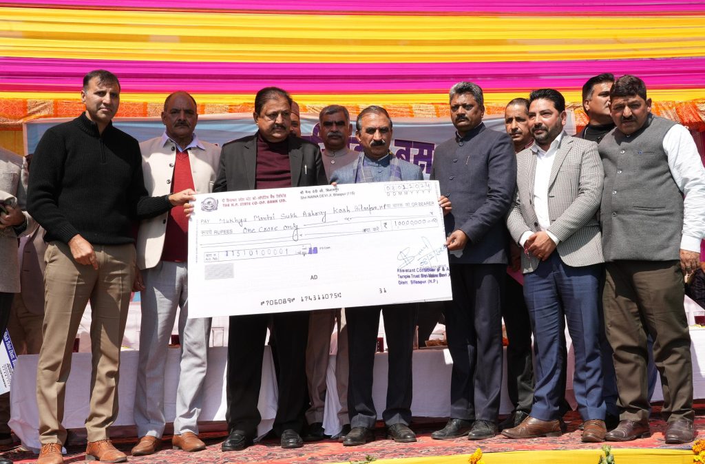 इस अवसर पर कांगड़ा केंद्रीय सहकारी बैंक के अध्यक्ष कुलदीप सिंह पठानिया ने भी अपने विचार प्रस्तुत किए।पूर्व मंत्री राम लाल ठाकुर ने मुख्यमंत्री को मुख्यमंत्री सुख आश्रय कोष के लिए श्री नैना देवी मंदिर न्यास की ओर से एक करोड़ रुपये का चेक और बाबा बालक नाथ मंदिर शाहतलाई न्यास की ओर से 50 लाख रुपये का चेक भेंट किया।