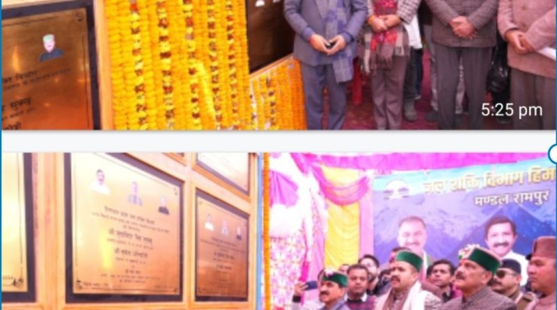 मुख्यमंत्री ने तहसील रामपुर की ग्राम पंचायत देव नगर के गांव के लिए मछाडा खड्ड से 2.20 करोड़ रुपये की उठाऊ जल आपूर्ति योजना, ग्राम पंचायत बगलती के गांव अडू ज्वालडा के लिए 1.10 करोड़ रुपये की उठाऊ जल आपूर्ति योजना, ग्राम पंचायत शाहधार में हरिजन बस्ती टालरा, मझगांव, रंगोरी, ओडीधार, डेऊ, कुन्नी और शाहधार के लिए 2.13 करोड़ रुपये के लिए पेयजल योजना, तहसील ननखड़ी की ग्राम पंचायत जाहू, खूनी के जाहू, जून्नी, बनी, बासा और गाहन के लिए नून खड्ड से 2.24 करोड़ रुपये की जल आपूर्ति योजना, उप-मंडल रामपुर मंे लोगों के लिए जल शक्ति के अन्तर्गत 2 करोड़ रुपये से उठाऊ जल आपूर्ति योजना, तहसील रामपुर की उप-तहसील तकलेच के अन्तर्गत जल शक्ति के तहत 1.85 करोड़ रुपये से विभिन्न जल आपूर्ति योजनाओं के सुदृढ़ीकरण और उप-मंडल ननखड़ी में जल शक्ति के अन्तर्गत 1.85 करोड़ रुपये से विभिन्न जल आपूर्ति योजनाओं के सुदृढ़ीकरण कार्यों का लोकार्पण किया।